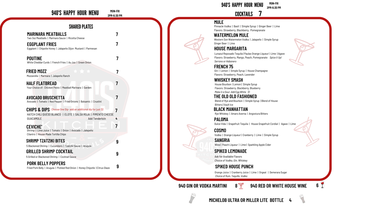 Exciting Specials at 940's Kitchen & Cocktails